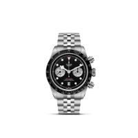 ブラックベイ クロノに搭載されているマニュファクチュール クロノグラフキャリバー MT5813は、時、分、秒、クロノグラフ、日付機能を備えている。他のチューダーのマニュファクチュール キャリバー同様、特徴的な仕上げが施されている。モノブロックのタングステン製ローターはオープンワークで細部にサンドブラストを伴うサテン仕上げ、ブリッジとメインプレートはサンドブラスト表面とレーザー装飾が交互に施されている。