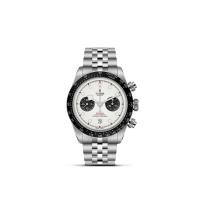 ブラックベイ クロノに搭載されているマニュファクチュール クロノグラフキャリバー MT5813は、時、分、秒、クロノグラフ、日付機能を備えている。他のチューダーのマニュファクチュール キャリバー同様、特徴的な仕上げが施されている。モノブロックのタングステン製ローターはオープンワークで細部にサンドブラストを伴うサテン仕上げ、ブリッジとメインプレートはサンドブラスト表面とレーザー装飾が交互に施されている。