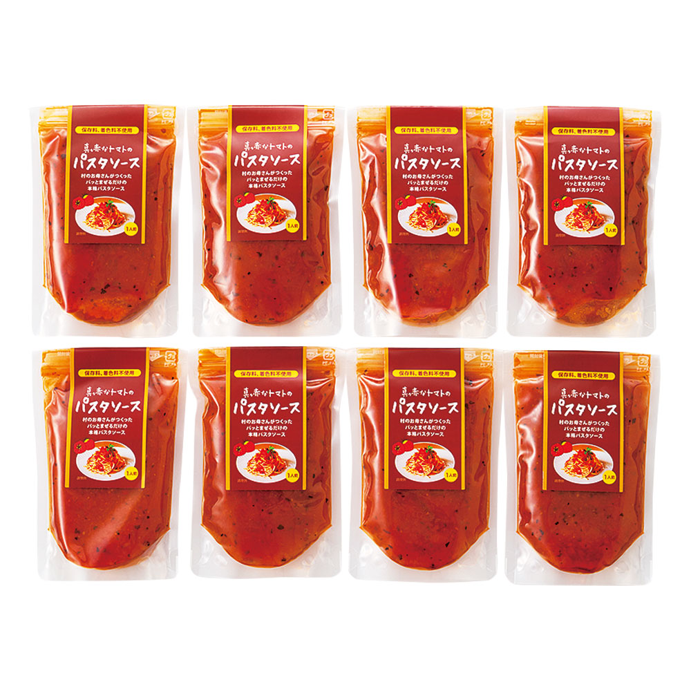 高知県日高村で栽培されたブランドトマトの規格外品を使用。一流シェフのレシピを基に、丁寧な手作業でソースに仕上げました。茹でたパスタに絡めるだけ。
