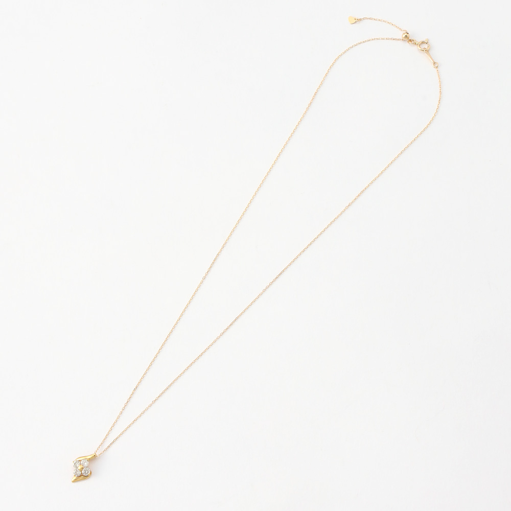 4石計約0.4ctの良質なダイヤモンドがまるで幸運のクローバーのように寄り添い、輝きを放ちます。その光の花を優しく包み込むのは純金を贅沢に使った優美なアシンメトリーのライン。純金ならではの深くリッチな艶がダイヤモンドの清らかな煌めきを引き立てます。チェーンはK18製、ミリ単位で長さを変えられる45cmフリーアジャスター仕様です。