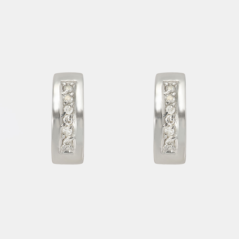 シルバーのラインにダイヤを6石ずつ並べたシンプルで使いやすいデザインのイヤリングです。