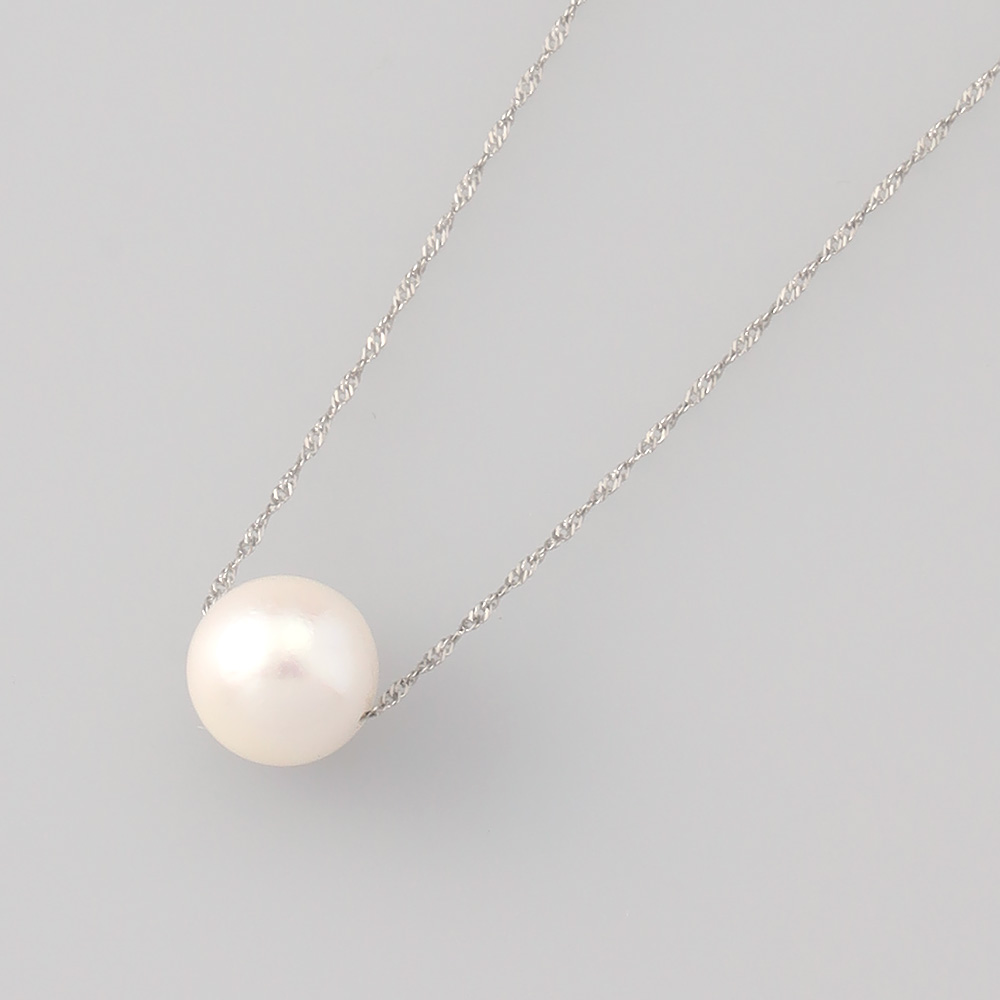アコヤ真珠8mm珠にプラチナのチェーンを通した定番で使いやすいペンダントです。年齢、服装を選ばないので大切な方へのプレゼントにも。