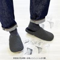甲材:レーヨン、ポリエステル、ナイロン、ポリウレタン、中・甲裏:ポリエステル、かかと部:ポリエステル、レーヨン、ポリウレタン、防災中敷:ポリエステル、綿、底:ポリエステル