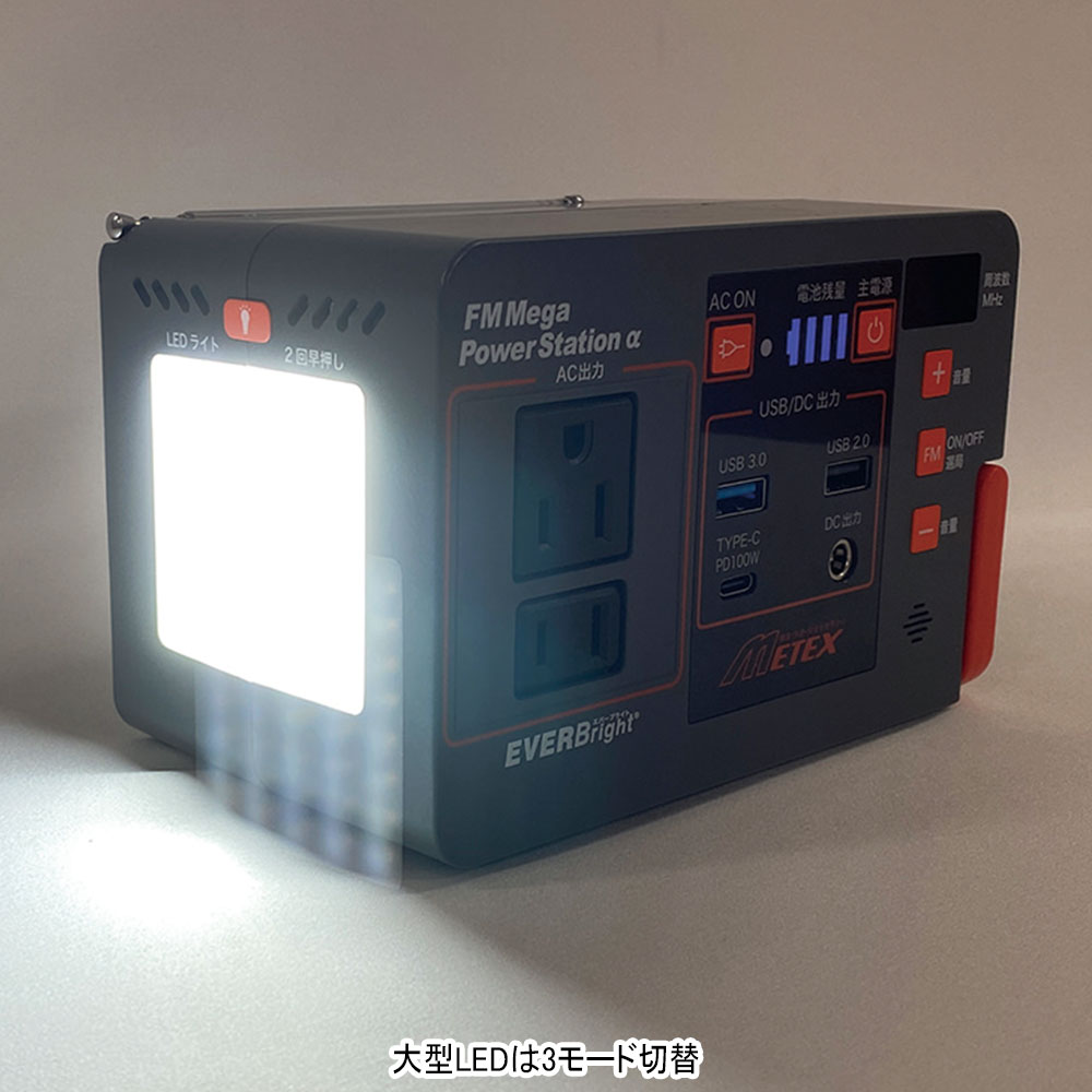 大型LEDライト(ON・SOS・点滅の3モード切替)