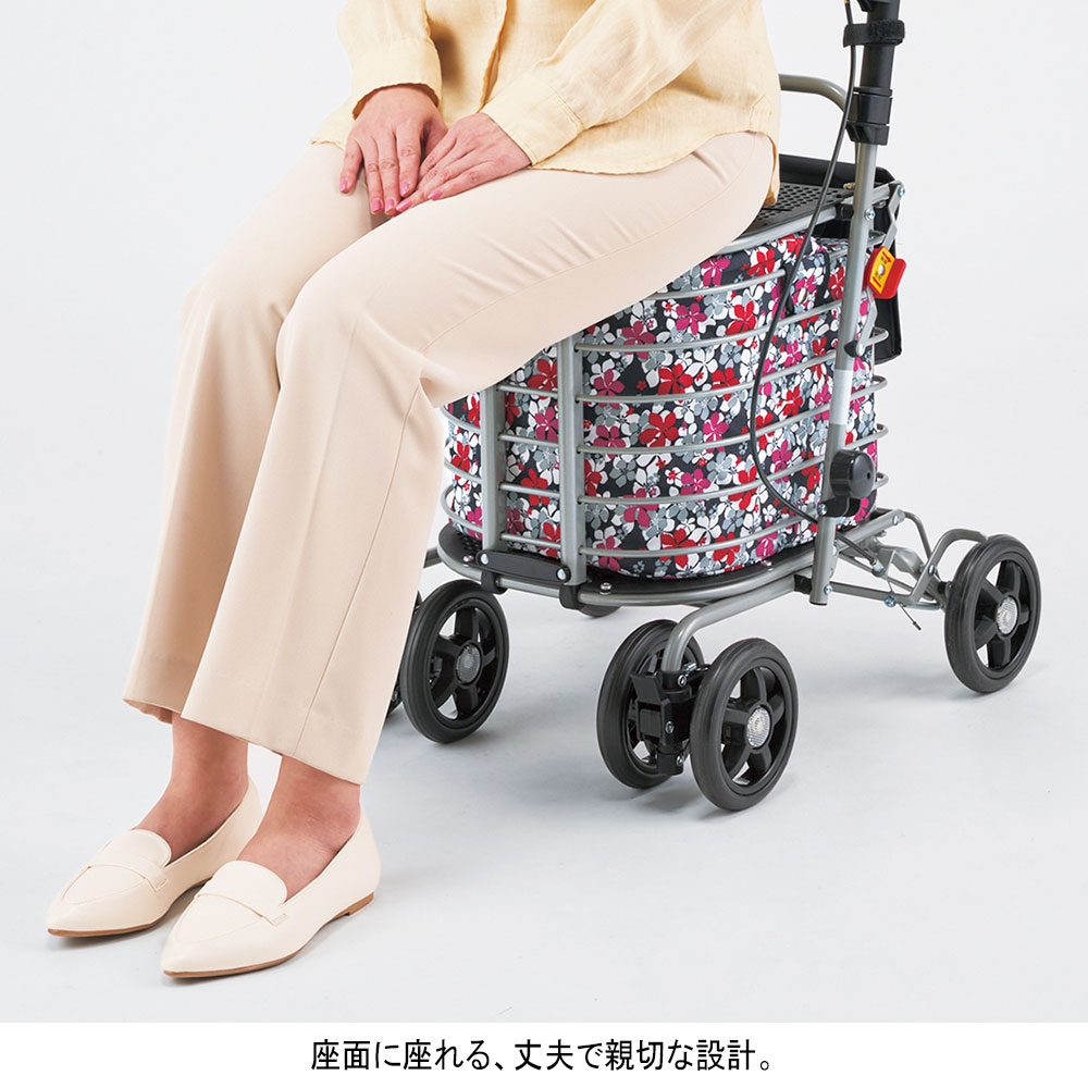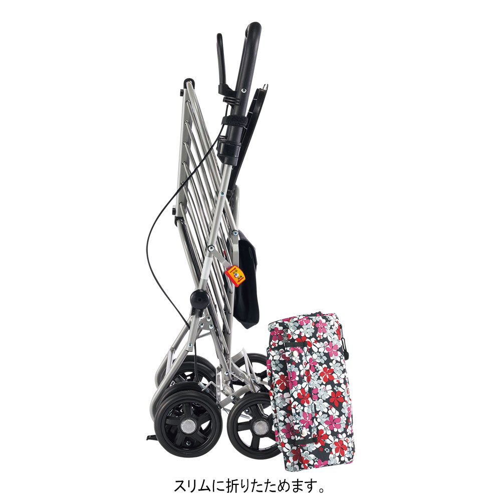 (約)使用時:幅46×奥行54×高さ83~91cm(3段階)、折りたたみ時:幅46×奥行31×高さ91cm、カゴ内寸:幅29.5×奥行30.5×高さ29.5cm、座面:幅32×奥行30×高さ49cm、タイヤ径:14.5cm、保冷バッグ:幅29×奥行29×高さ29cm(外寸)