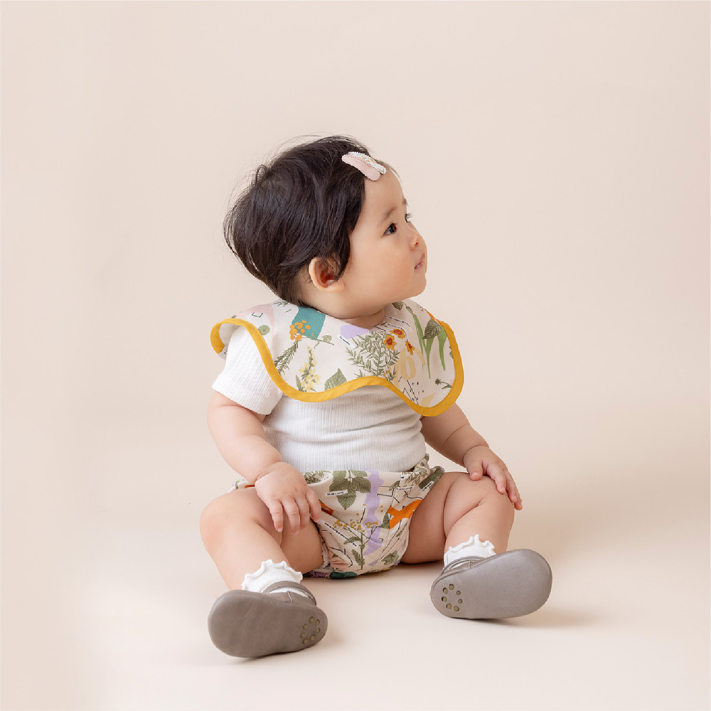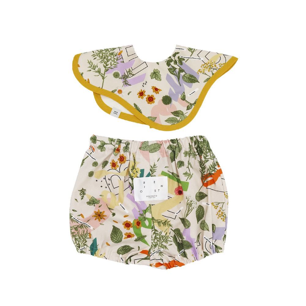 「ベビーにも個性を」をテーマに、デザイン事務所が手掛けるオリジナルテキスタイルが人気のベビー&キッズアパレルブランド「SENOBITO(セノビト)」。アンティークなお花柄が華やかで、おでかけやギフトにもぴったり。※型取りの位置により、柄が異なります。