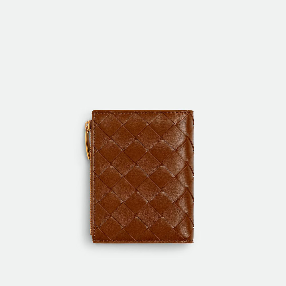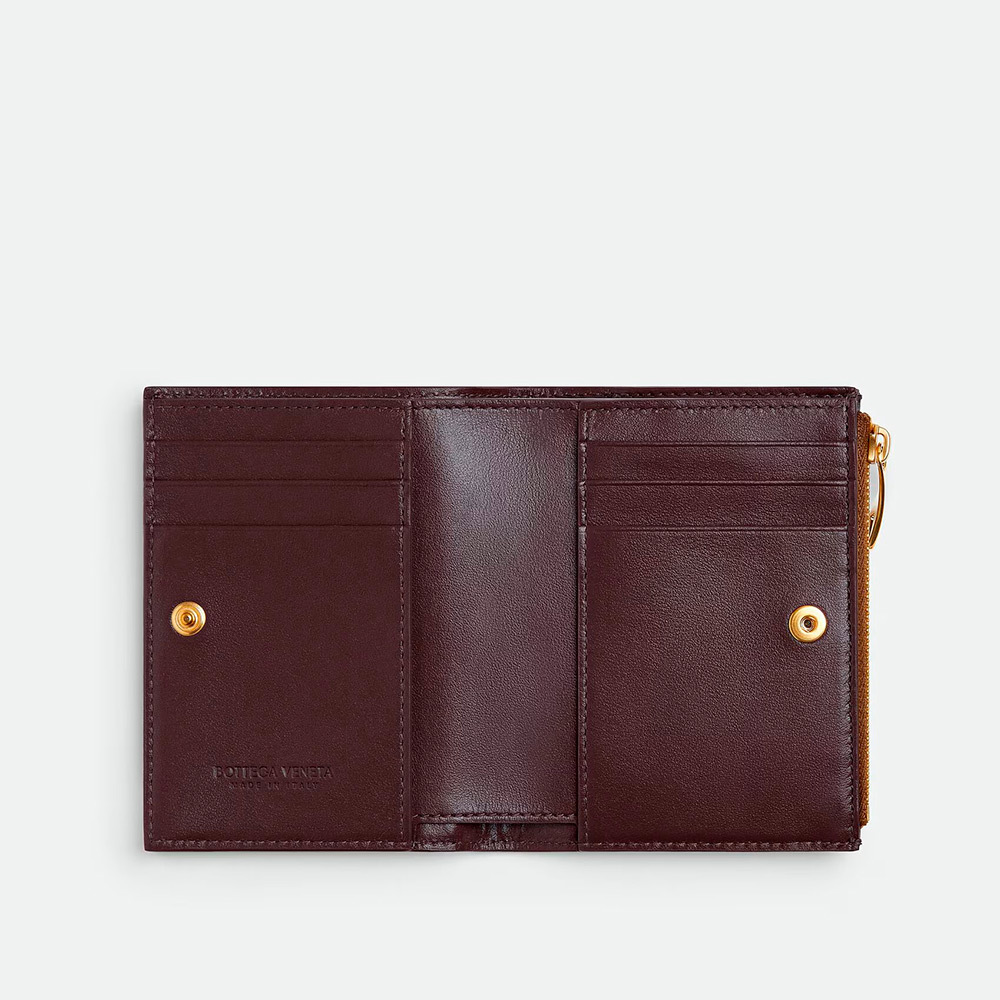 内側にコントラストカラーを配した、イントレチャートナッパレザーの二つ折りスモールウォレットです。