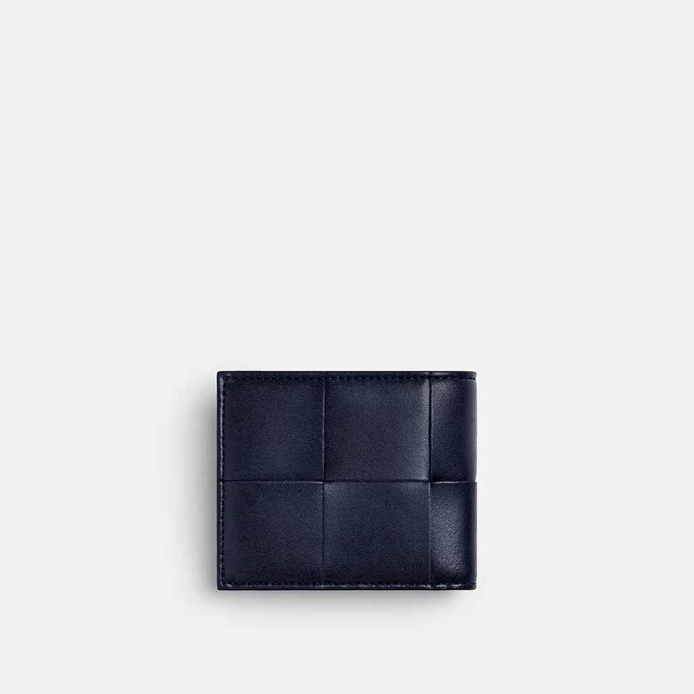 内側にコントラストカラーを配した、イントレチャートカーフレザーの二つ折りウォレットです。コインパースが付いています。