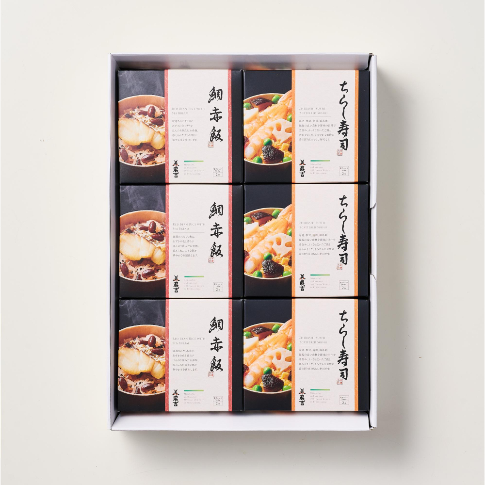 京料理の老舗<美濃吉>から京都のちらし寿司と鯛赤飯をお届けいたします。