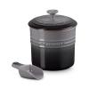 大切なペットのドライフードやトリーツを、スタイリッシュに保存できる専用コンテナーです。密閉性のあるフタが湿気や匂いを抑え、フードの鮮度をキープ。便利なスクープ付きで、毎日のごはんタイムもスムーズに。目安として800-900g程度のフードが収納可能(粒の大きさによって異なります)。豊富なカラーバリエーションで、キッチンやリビングにも美しく馴染みます。