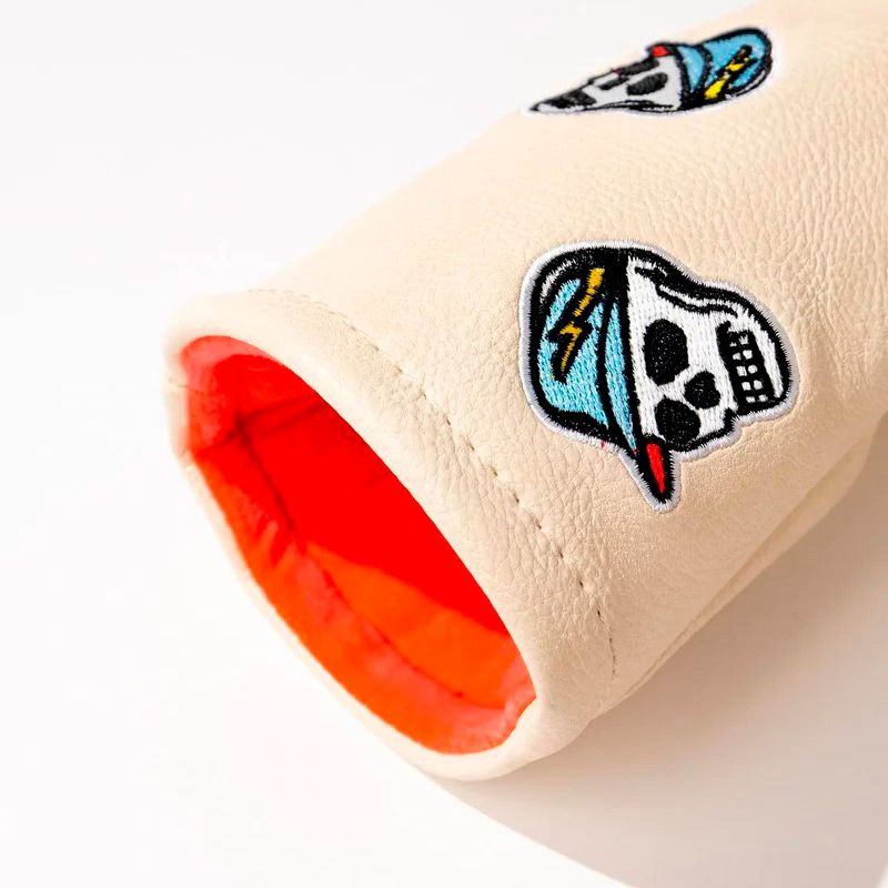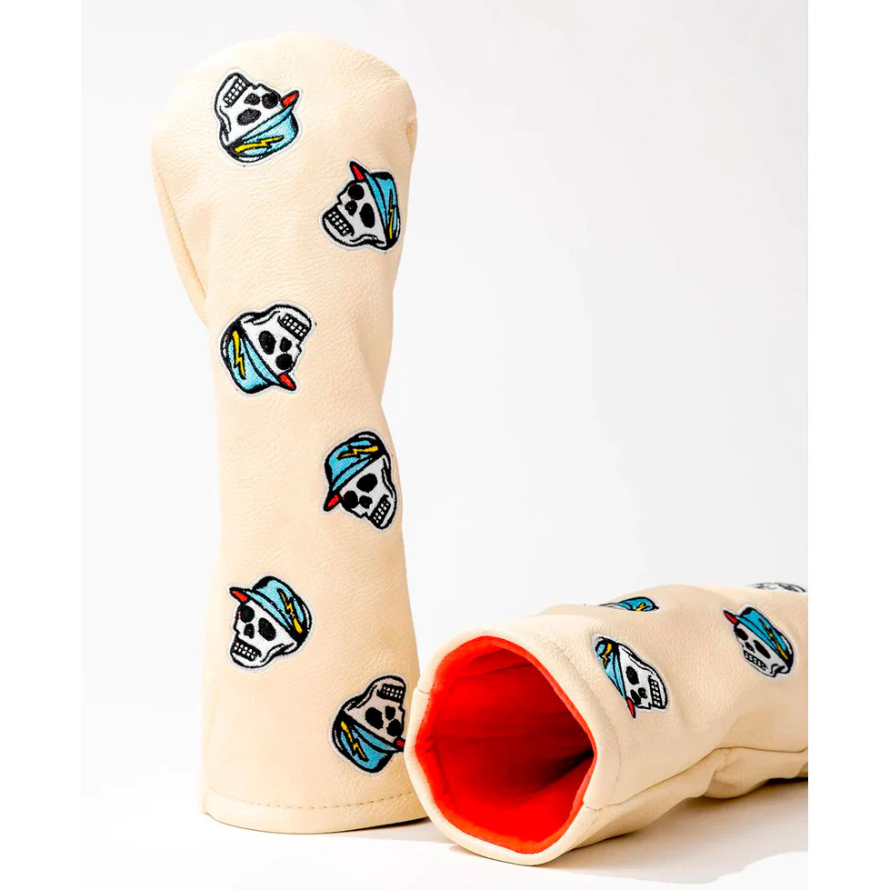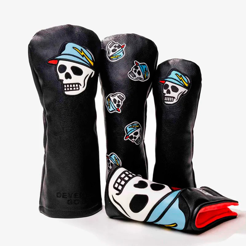 DEVEREUX GOLFのアイコンであるスカルキャディーを存在感ある刺しゅうワッペンで装飾したフェアウェイウッドカバー