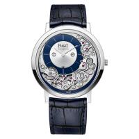 41mm。18Kホワイトゴールド製ケース。世界最薄の自動巻ウォッチの一つ。ケースと一体型の910P自社製薄型自動巻ムーブメント。