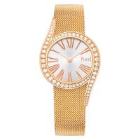 26 mm。18Kピンクゴールド製ケースにブリリアントカットダイヤモンド60個(約0.85カラット)。18Kピンクゴールド製ミラネーゼブレスレット。バックルにブリリアントカットダイヤモンド1個(約0.01カラット)。ピアジェ自社製クオーツムーブメント59P。