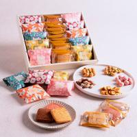 22個(落花生×苺みるく、落花生×ホタテ燻製 、カシューナッツ×わさび醤油、そら豆×焼きモロコシ醤油、アーモンド×しゃりがけメープル 各2個、自由が丘サブレ(マカダミアバニラ、ピーナッツショコラ、ピスタチオフランボワーズ)各4枚)