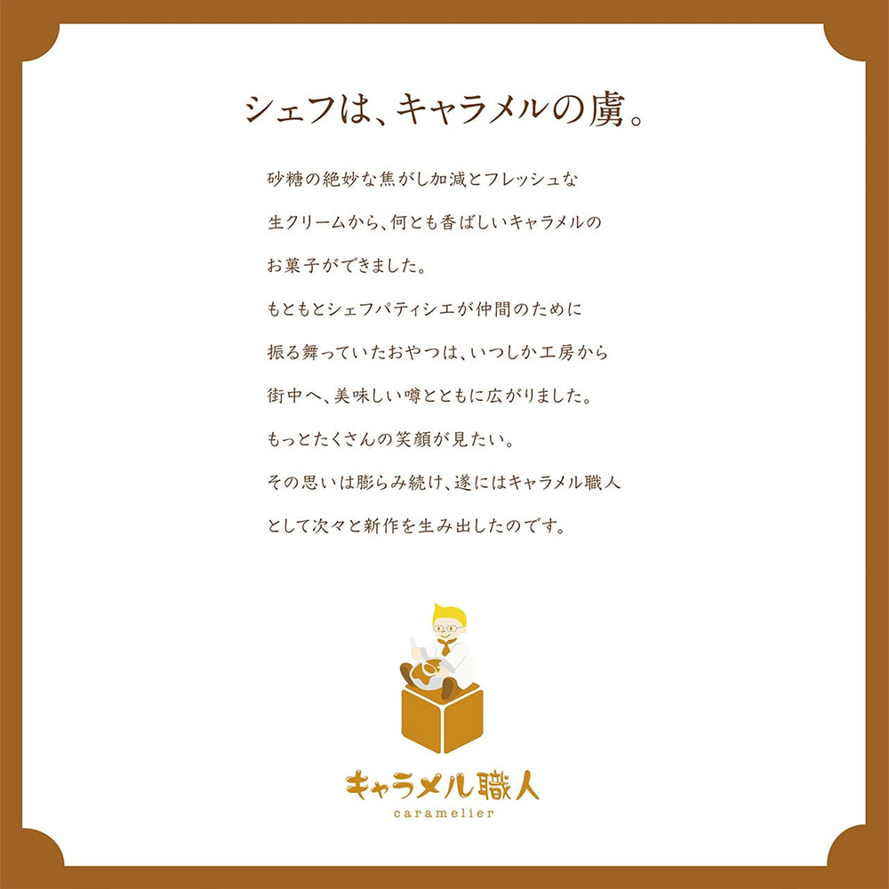 サクサクのデニッシュに、香ばしいキャラメルクリームをたっぷりコーティング。プレーンなキャラメルと、ほろ苦いコーヒーキャラメルの2種類を詰め合わせました。甘さとビターのバランスが楽しめる、贈りものにもぴったりのセットです。※システム上、「のし・掛け紙」はご選択いただけませんが、ご希望の場合は店頭にて承ります。