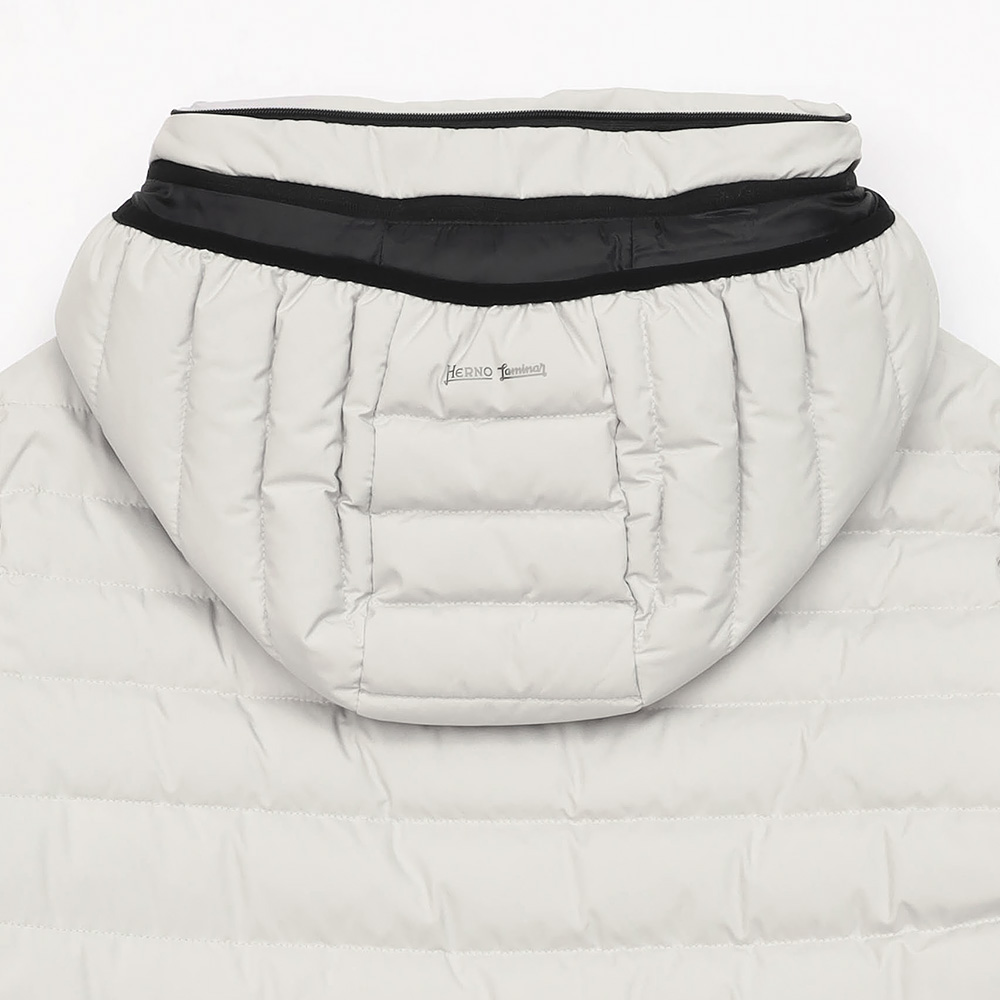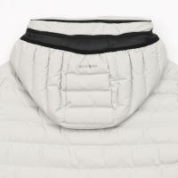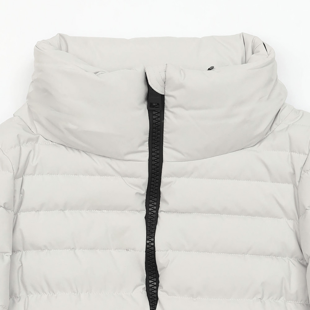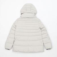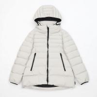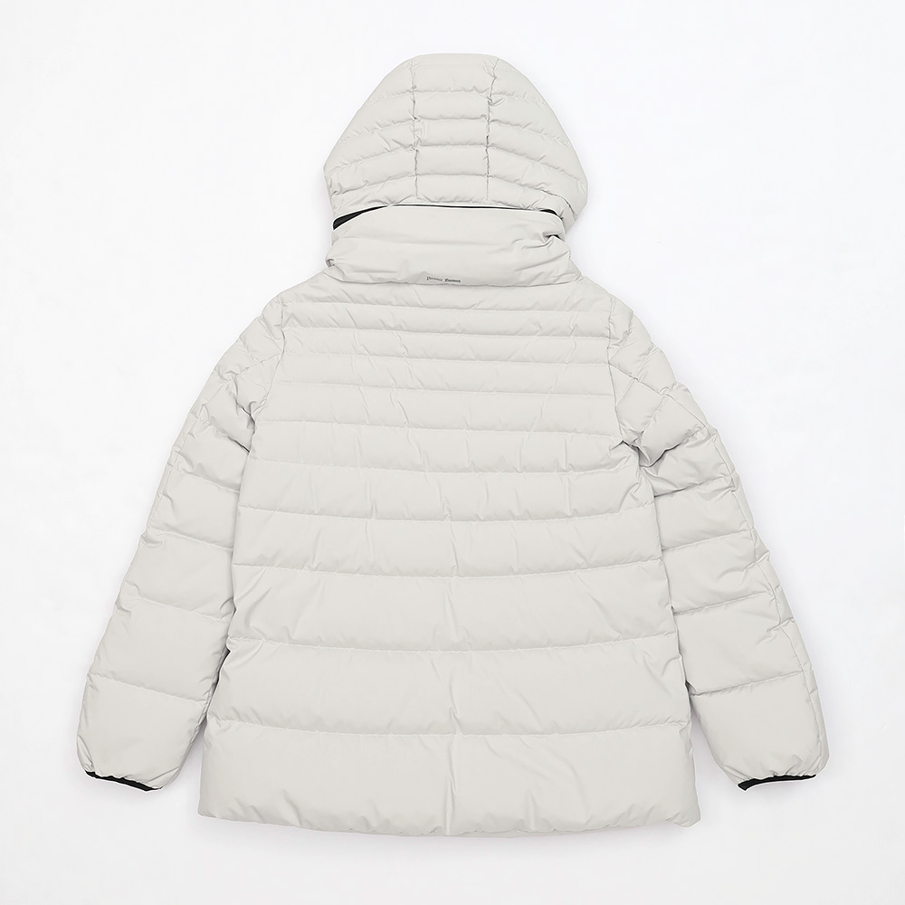 ショート丈ダウンコート。高めに配したネックのパターンと裾にかけて自然なAラインのシルエットが特徴。無駄の無いシルエットに加え、身頃のフィット感は保温性を高め、着用時の美しいシルエットを醸し出します。フード着脱可。