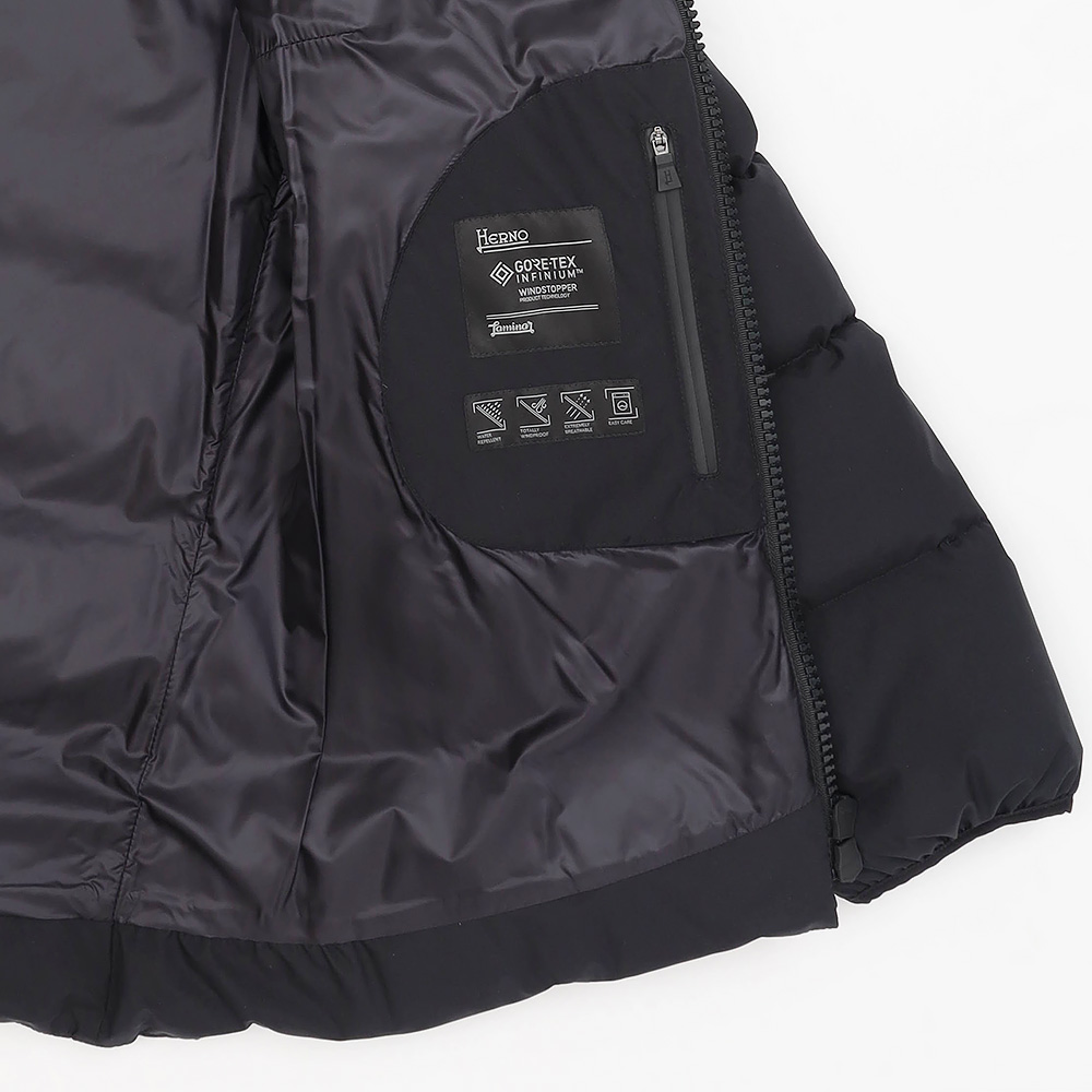「GORE-TEX INFINIUM(2層構造)」防風、保温、透湿性に優れた”GORE-TEX”の2層構造(2LAYER)ファブリクス。3層構造の生地と比較すると、軽く柔らかな着心地が特徴。止水テープを使用していないため、完全防水ではないものの、タウンユースで着用する分には充分な撥水性能が備わっています。