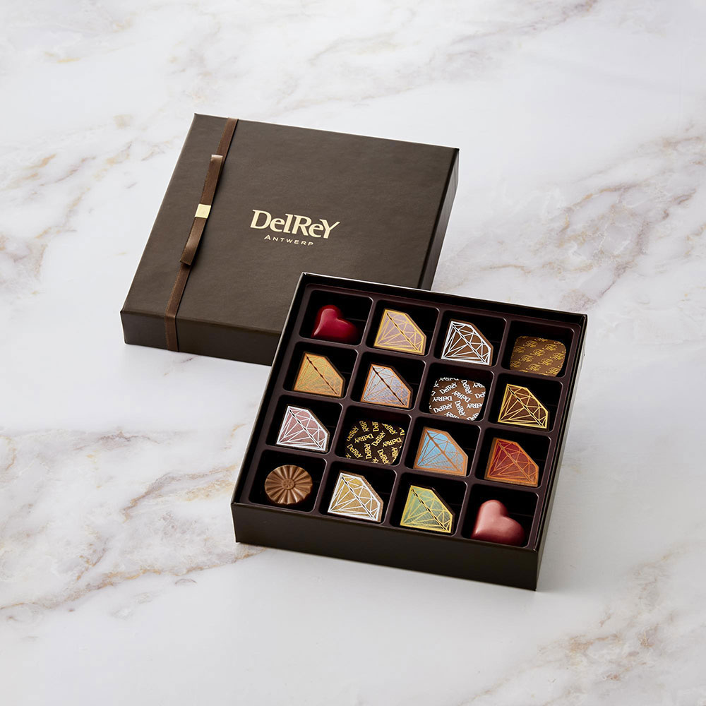 キャラメルダイヤモンド・ペルートンカダイヤモンド・ピスタチオラズベリーダイヤモンド・ライチダイヤモンド・マンゴーダイヤモンド・ヴェネズエラダイヤモンド・ストロベリー&レモンダイヤモンド・ブラックベリー&マンジャリダイヤモンド・ラズベリー&バニラダイヤモンド・エキゾチックフルーツ&塩キャラメルダイヤモンド・レッドハートパッション・ピンクハートルビー・ソルティプラリネミルク・スクエアゴールドプラリネ・ティーミルク・マーガレットミルク 各1 計16個入