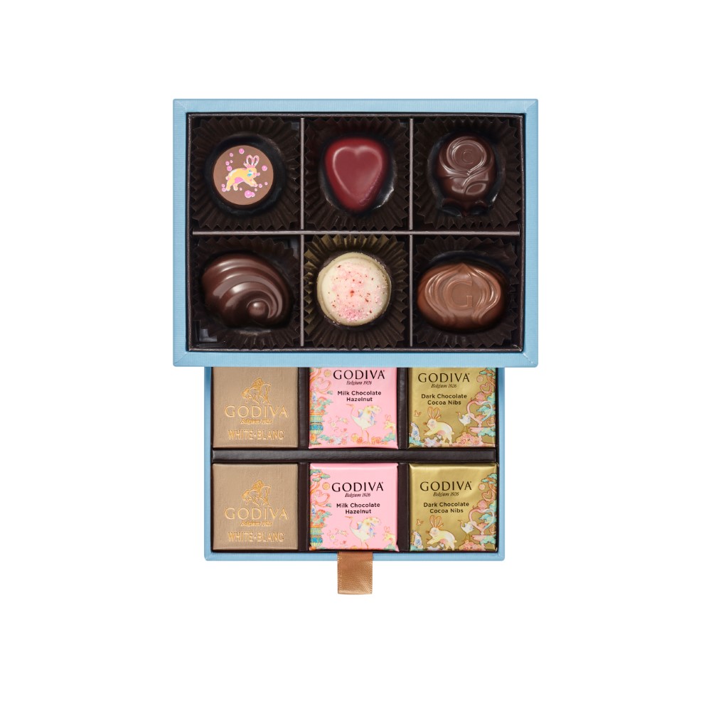 ゴディバのホワイトデー限定粒とカレを楽しみたい方へ。甘酸っぱいローズヒップガナッシュをほろ苦いダークチョコレートで包んだローズ形のチョコレートと酸味のあるラズベリーガナッシュが入ったハート形のチョコレートなどさまざまなショコラを詰め合わせました。感謝とまごころを込めた贈りものに。