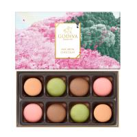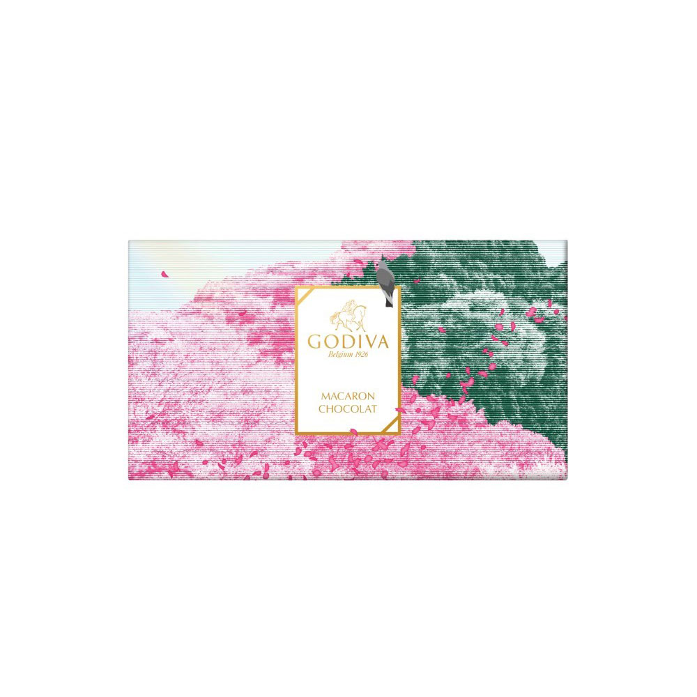食感の異なるチョコレート、マカロン、ガナッシュのマリアージュをお楽しみください。期間限定の「桜&ホワイトチョコレート」と「塩キャラメル」「宇治抹茶&ミルクチョコレート」「ミルクチョコレート」の4種のフレーバーをカラフルに詰め合わせました。