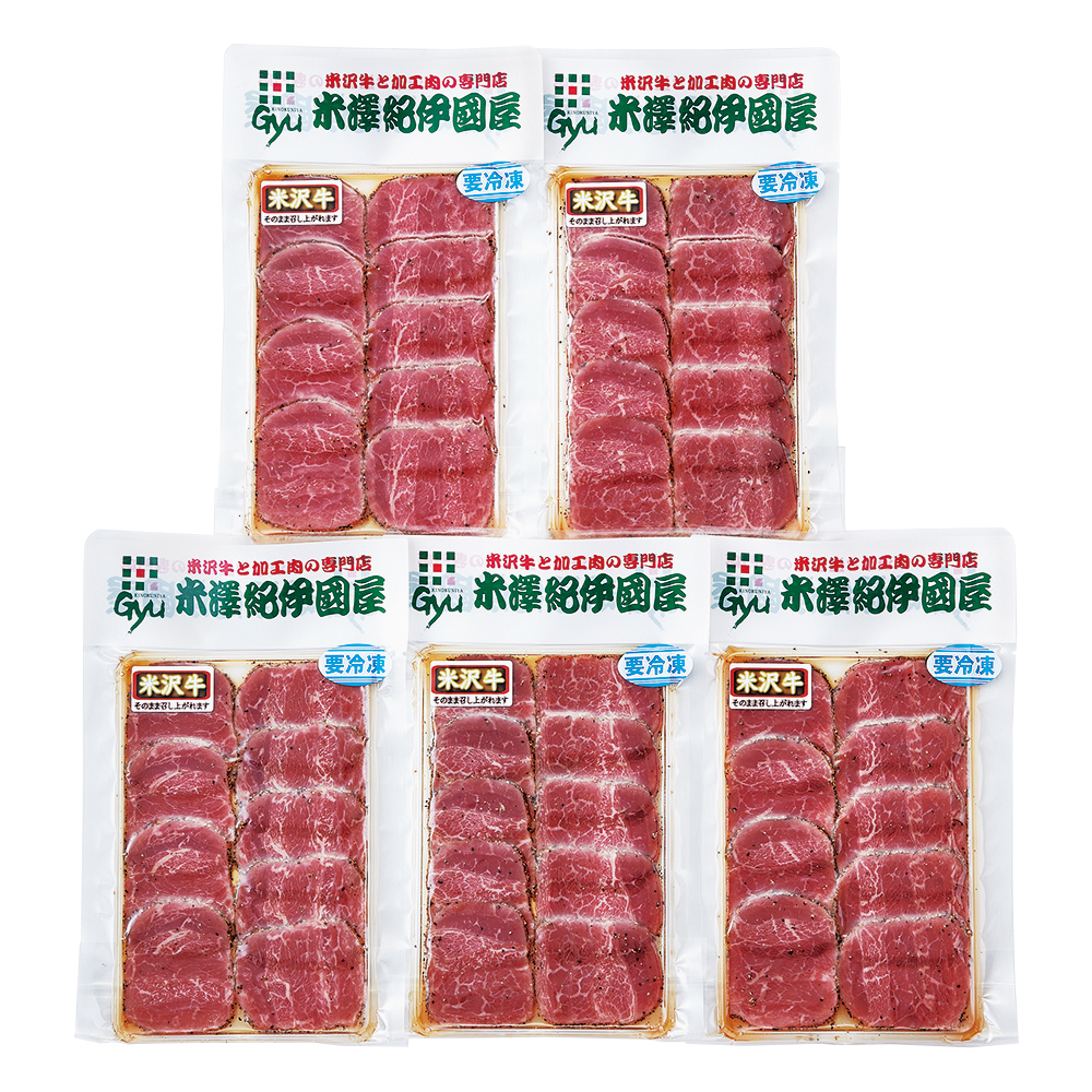米沢牛の黒胡椒包み焼きをスライスしました。解凍してそのまま召し上がれます。オードブルにして、またパンにはさんだり、サラダにしてもおいしくいただけます。