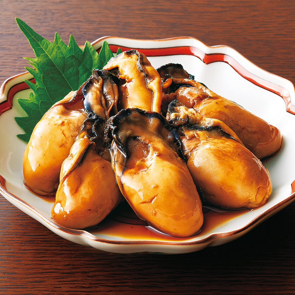 広島県産の牡蠣を使用。殻をはずしたむき身をボイルした後、特製の醤油タレで味付けしました。牡蠣のプリプリ感と磯の風味が楽しめます。