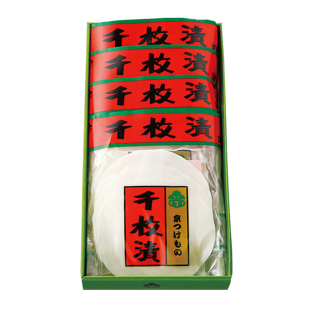 〈京つけもの もり〉伝統の千枚漬は、京都の冬の味覚。寒暖差のある土地で育った聖護院かぶらを、昔ながらの製法で1枚1枚丁寧に漬け込みました。