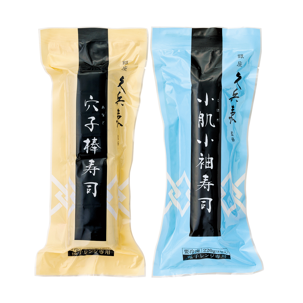穴子棒寿司300g(4切×2)、小肌小袖寿司220g(8切)