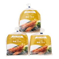 とんかつ屋さんの大きな海老フライ。一つ一つ丁寧に特製生パン粉で包み、揚げました。食べ応えのある一品です。ラップをかけずレンジ調理でサクサクの食感に。