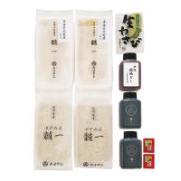信州蕎麦(茹で麺)200g×2袋、伝承のつゆ180mL×2個、琥珀だし180mL×1個、車海老天ぷら2本入×2パック、おろし山葵×1個、八幡屋礒五郎赤七味0.2g×2個