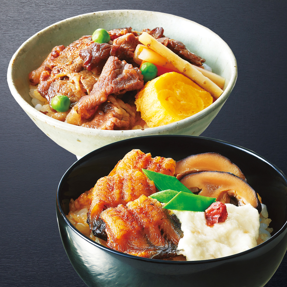 国産鰻めし160g・黒毛和牛すき焼きめし140g各3食、2種計6食
