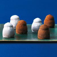 香り高いシャンパンクリームをチョコレートで包んだ、スイスのブランドの名品。ココアパウダーをまぶしたビターな味の「ダーク」とセットで。