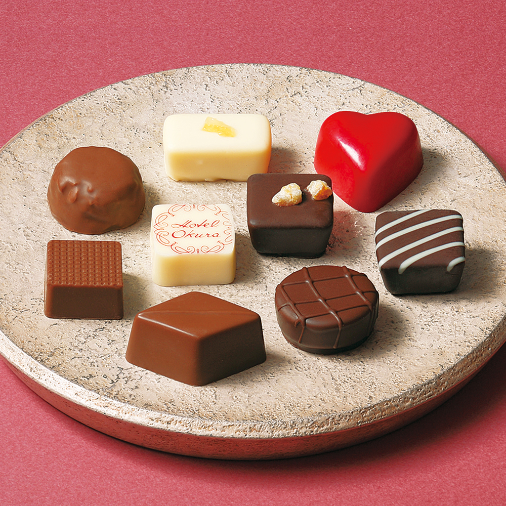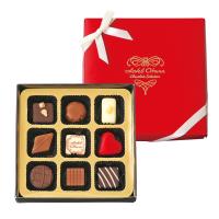 ハート形のラズベリー味のショコラや、キャラメル、ピスタチオ味のショコラなど、人気の9個をアソートしました。
