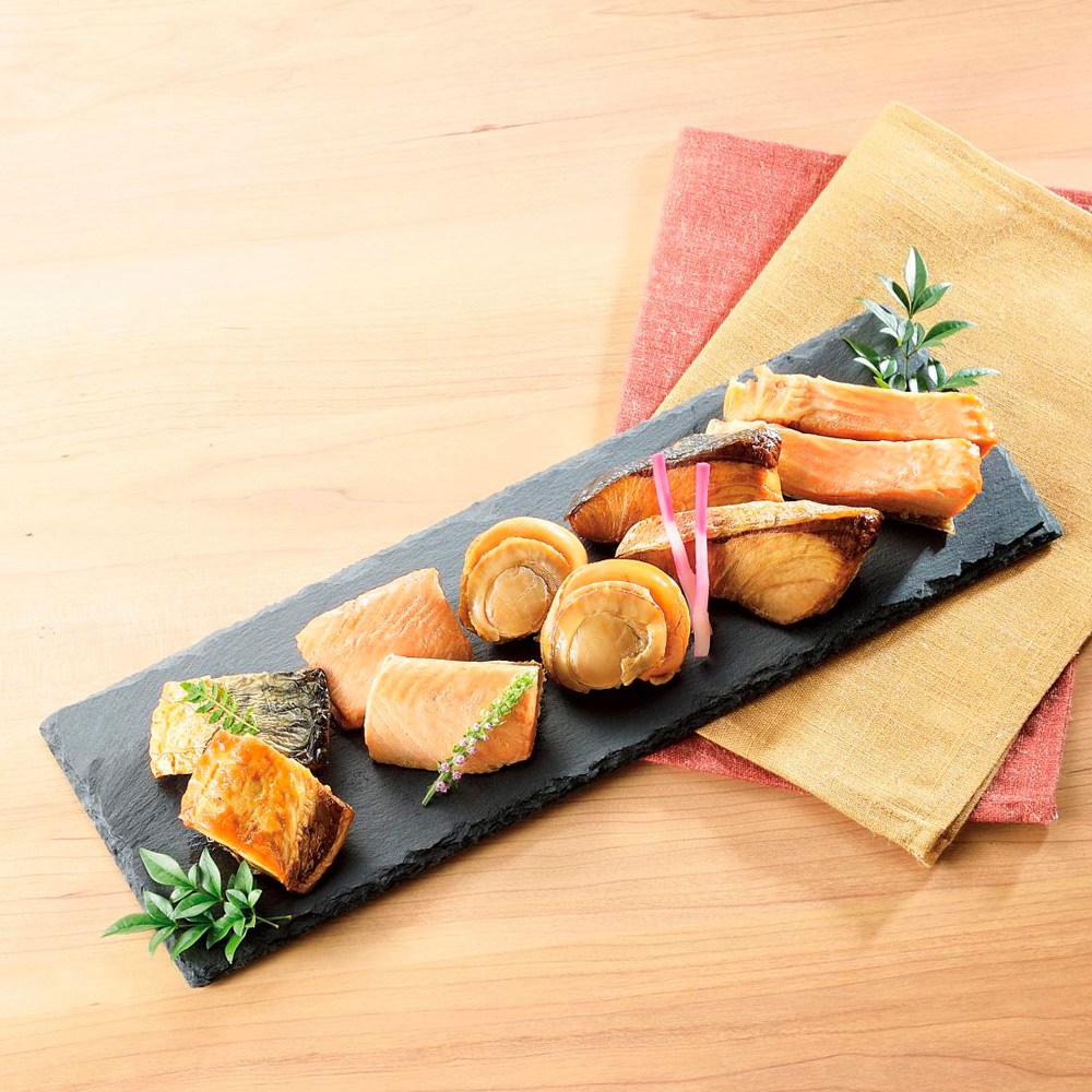 <匠の焼漬>さけ×1、ハラス×1、ぶり×1、ほたて×1、さば×2