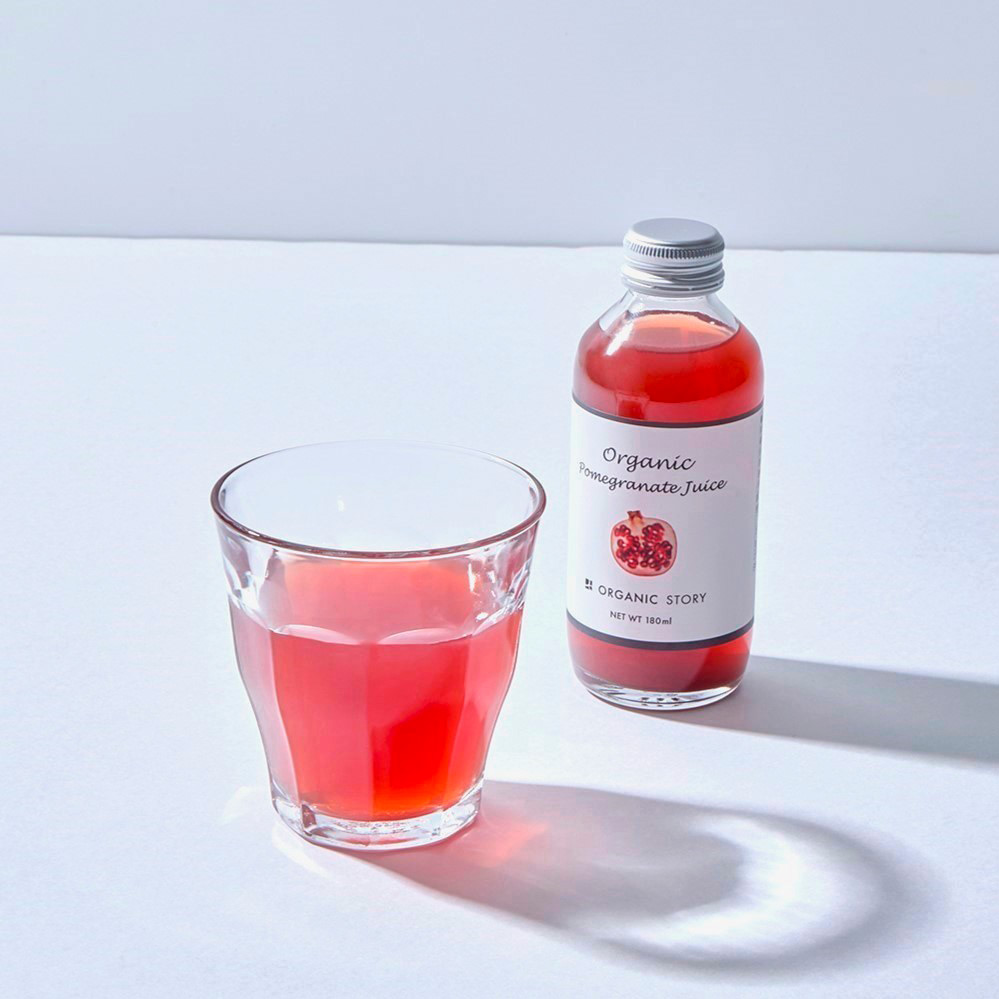有機栽培のざくろを、ぎゅっと搾ったストレート果汁100%のざくろジュース