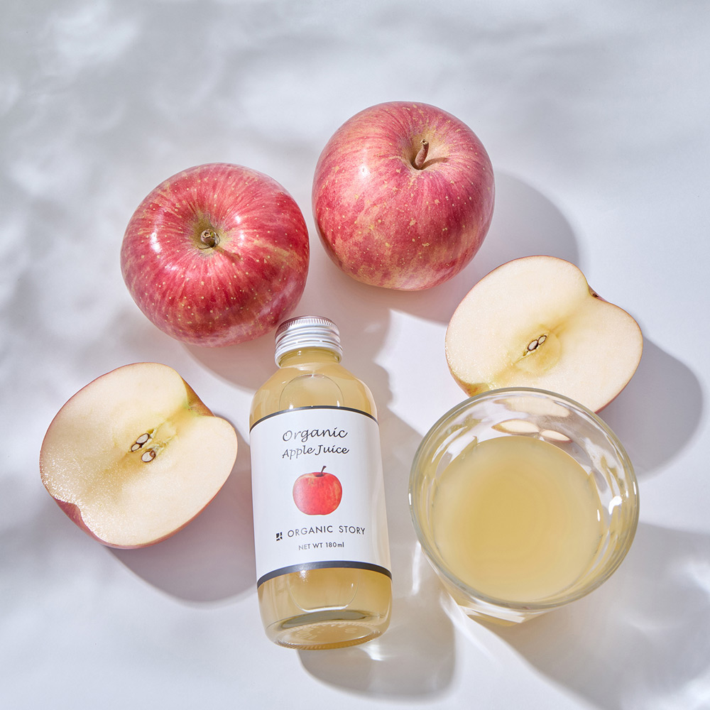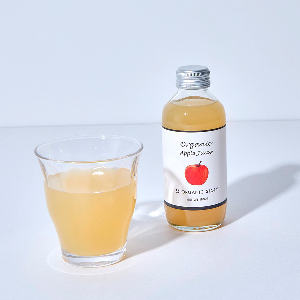 有機栽培のりんごを、ぎゅっと搾ったストレート果汁100%のりんごジュース