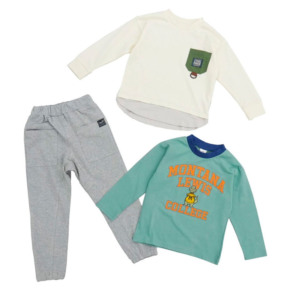 カレッジロゴと恐竜マスコットの刺しゅうをあしらった長袖Tシャツは、柔らかな素材で着心地が良く、シンプルながら遊び心のあるデザインが魅力。トレーナーは、360°ストレッチ素材を使用し、動きやすさと快適さを両立。アウトドアテイストのポケット付きで、アクティブなシーンにもぴったりです。パンツは、収納力抜群のBIGポケットを備えたストレッチ仕様。360°ストレッチ素材で、どんな動きにもフィットし、アウトドアから日常まで幅広く活躍します。動きやすさとデザイン性を兼ね備えたセットで、遊びもお出かけも楽しく快適に過ごせます。