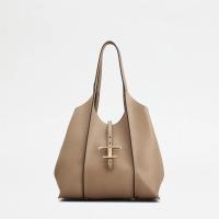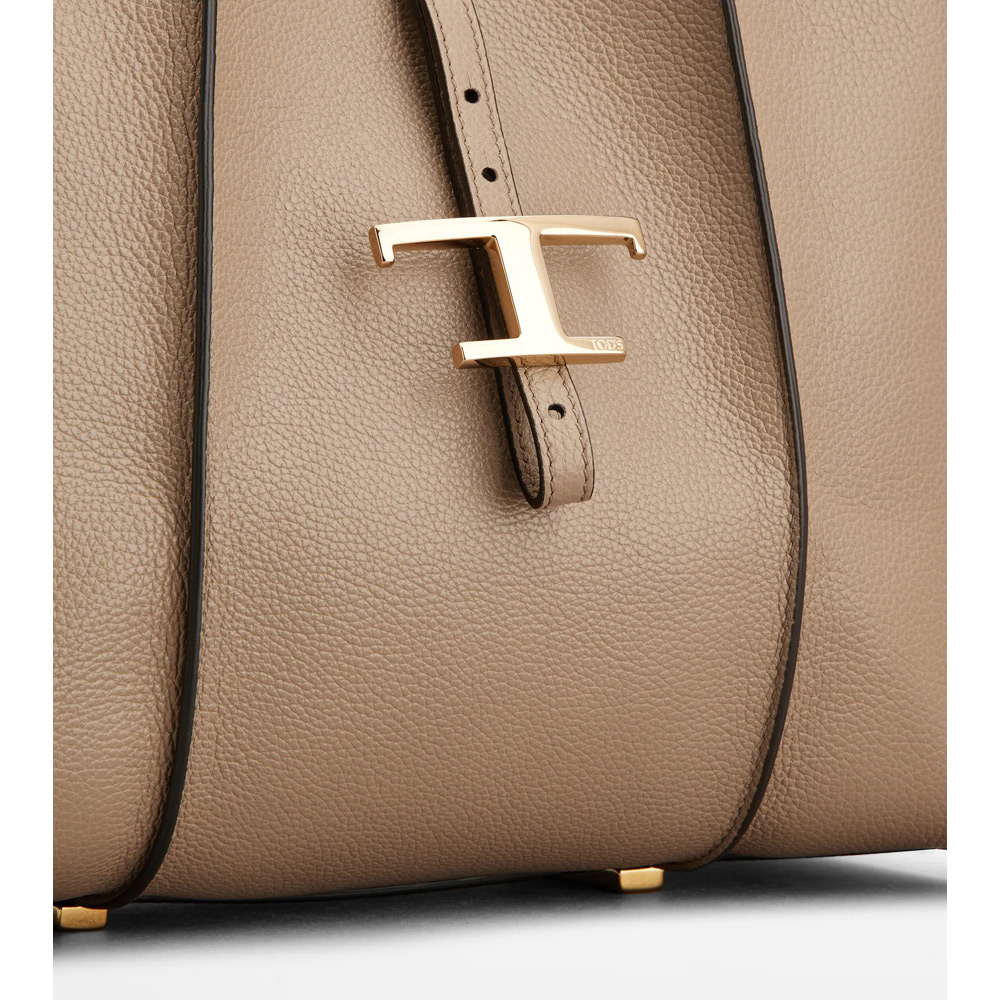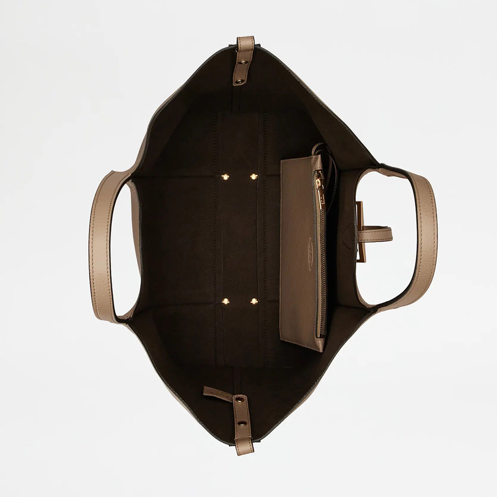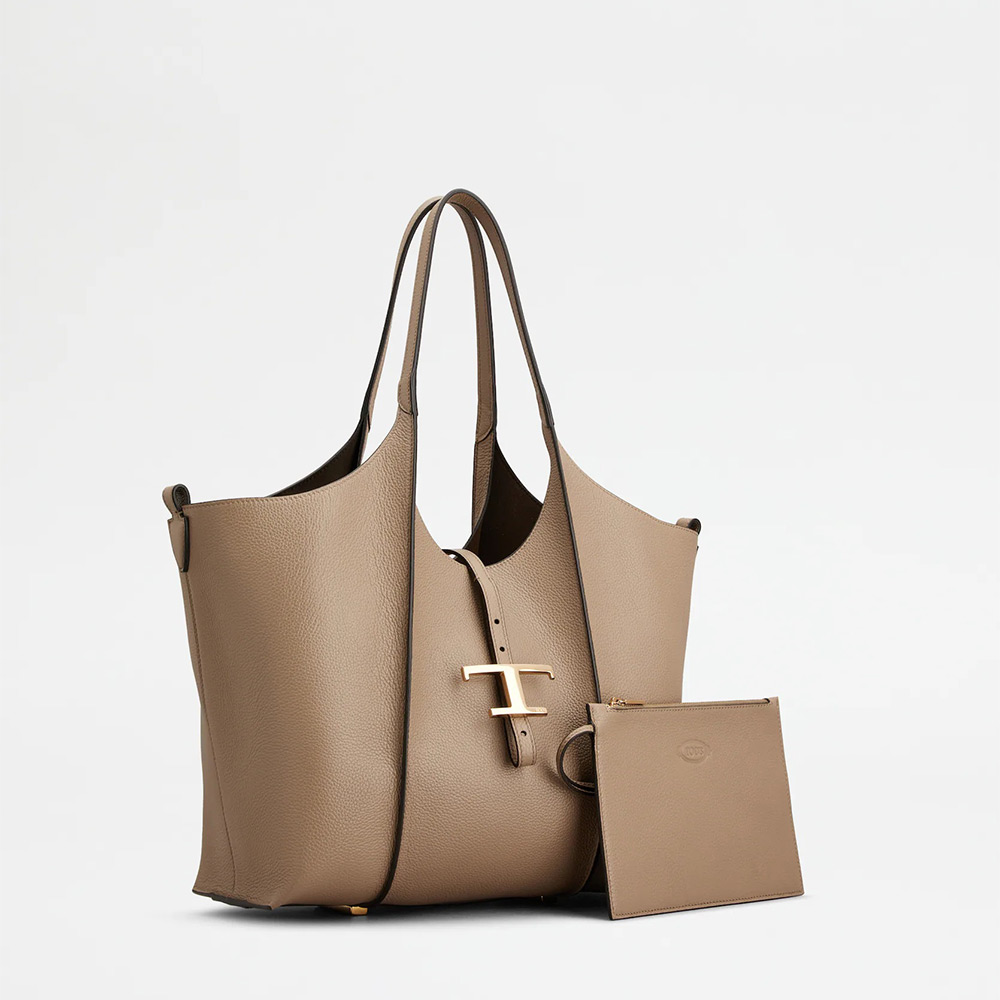 しなやかな曲線を描く、柔らかなカーフ レザーのショッピング バッグ。リブ、ロゴ入りの T タイムレス メタル ペンダント アクセサリー、ダブル ハンドルが特徴です。内部の広いコンパートメントに取り出し可能なポーチを合わせました。