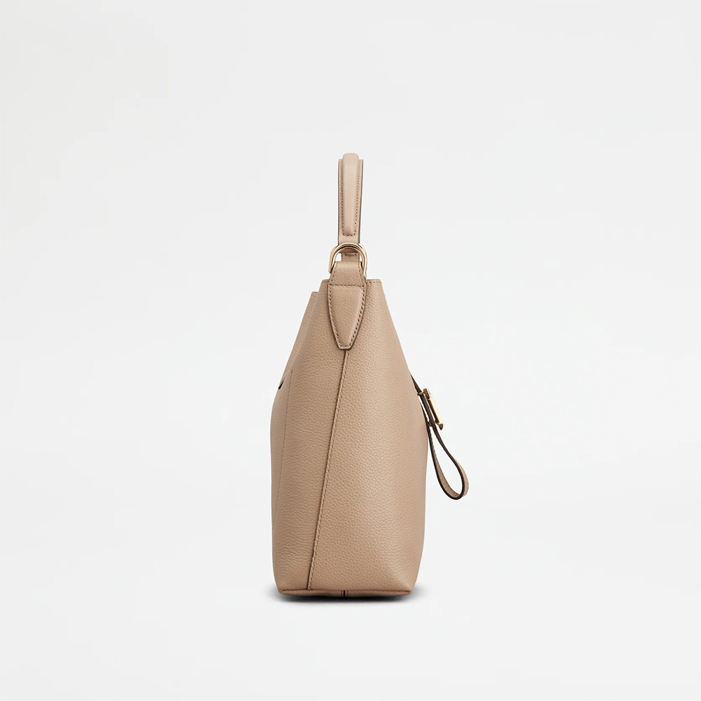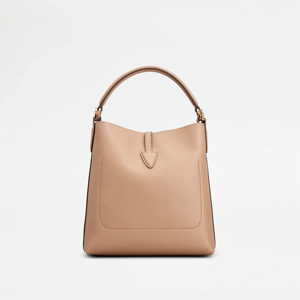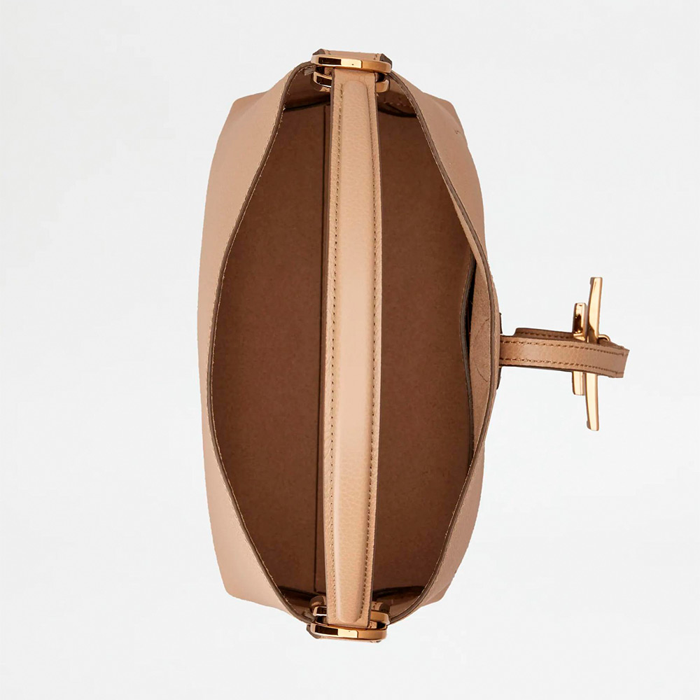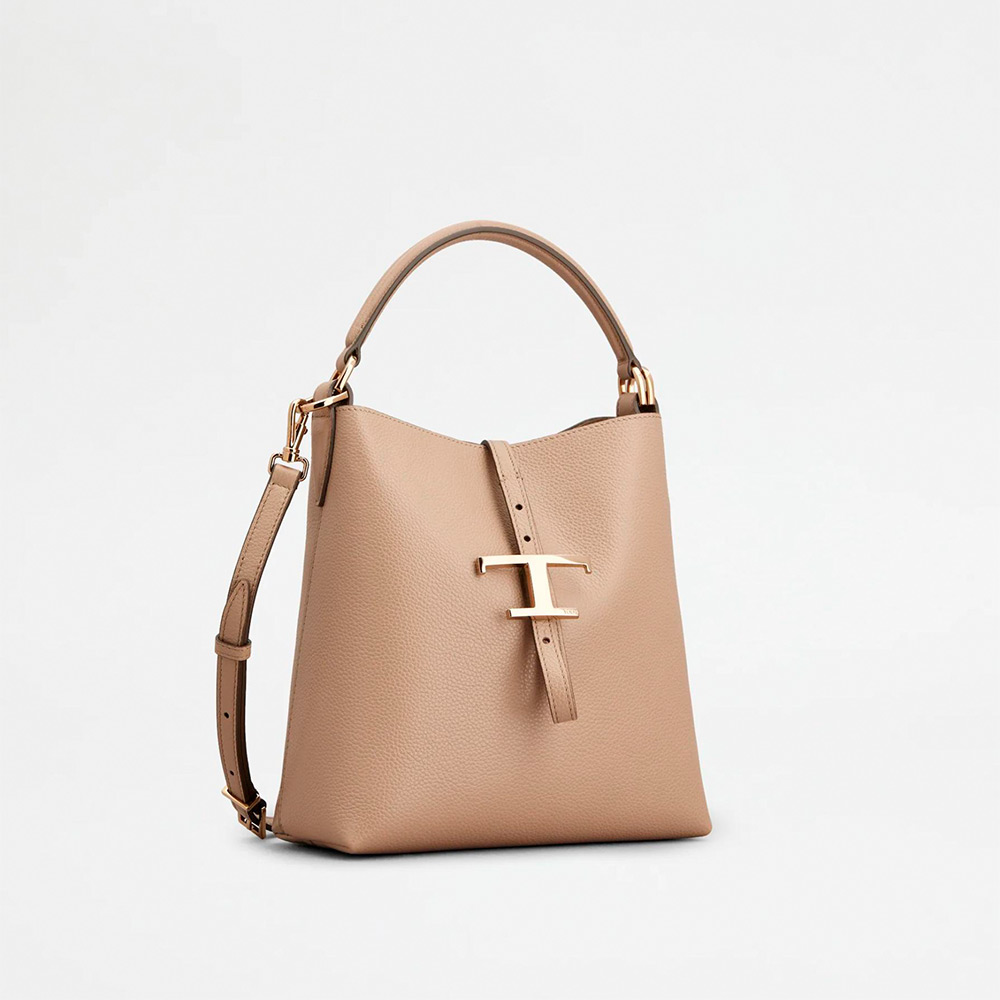 柔らかなカーフ レザーを用いた、丸みのあるシルエットのミニ バケット バッグ。広いコンパートメント、アイコニックなロゴ入りの T タイムレス メタル ペンダント、トップ ハンドル、取り外し可能なショルダー ストラップを合わせました。