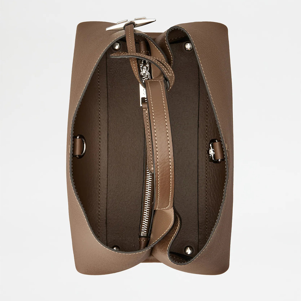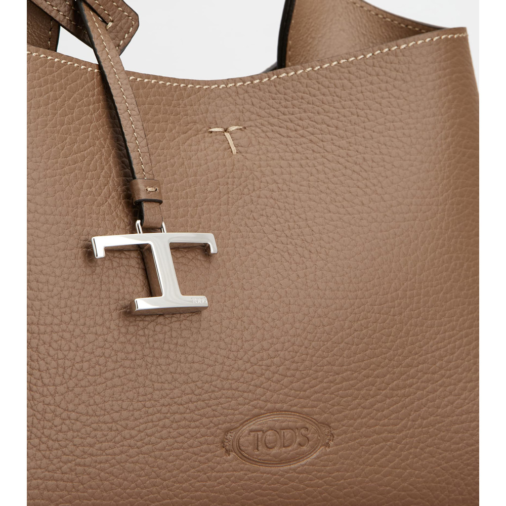 グレインの美しさが際立つ柔らかなレザーのバッグ。フロントにホットスタンプのトッズ ロゴ、フラット ハンドル、取り外し可能なショルダー ストラップを合わせました。内部の2つのコンパートメントはファスナー付きのポケットで仕切られています。T タイムレス メタル ペンダント、T ステッチをあしらい、トッズならではのアイコニックなディテールが光るエレガントなスタイルです。
