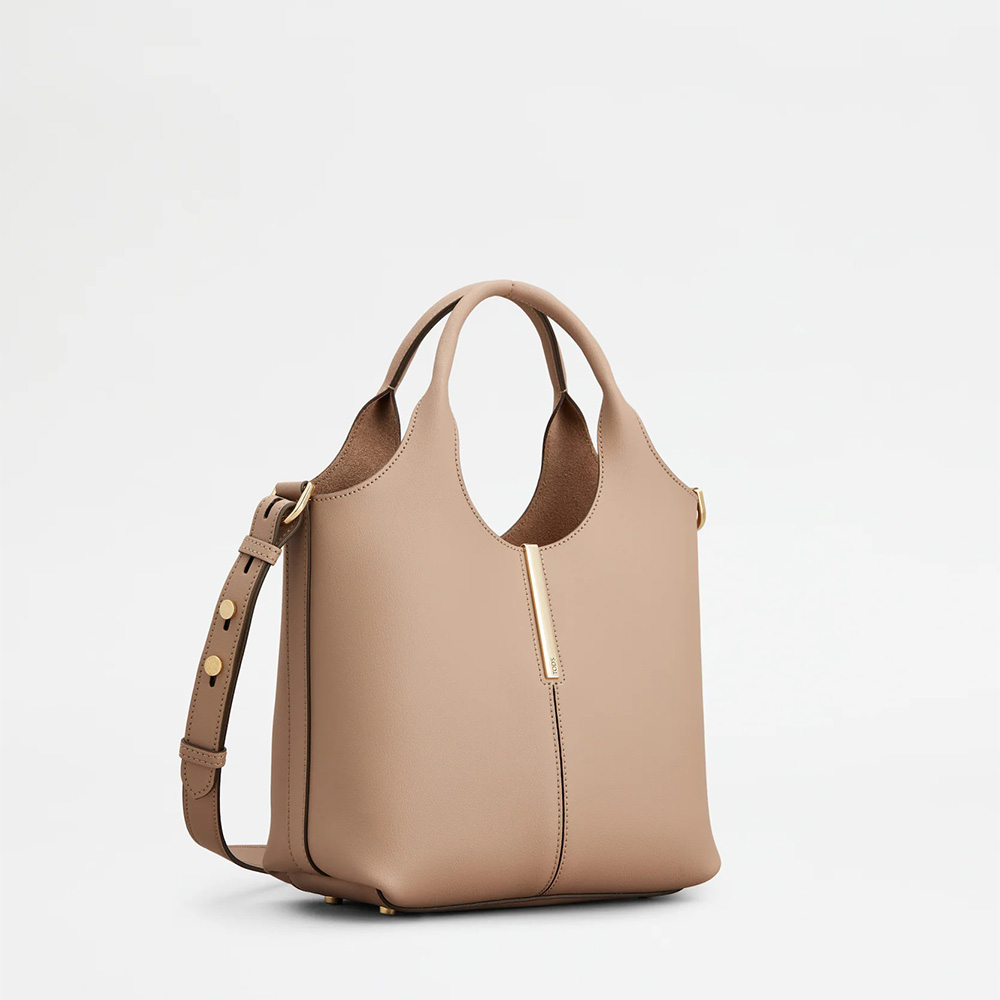 エッセンシャルなデザイン、軽やかさ、実用性を融合させた、カーフ レザーのモダンなミニ ショッピング トート。センター シームにロゴ入りのバレッタ メタル アクセサリー、フック クロージャー、取り外し可能なショルダー ストラップを合わせ、都会的なデイリー ルックにぴったりのオールラウンドなスタイルです。