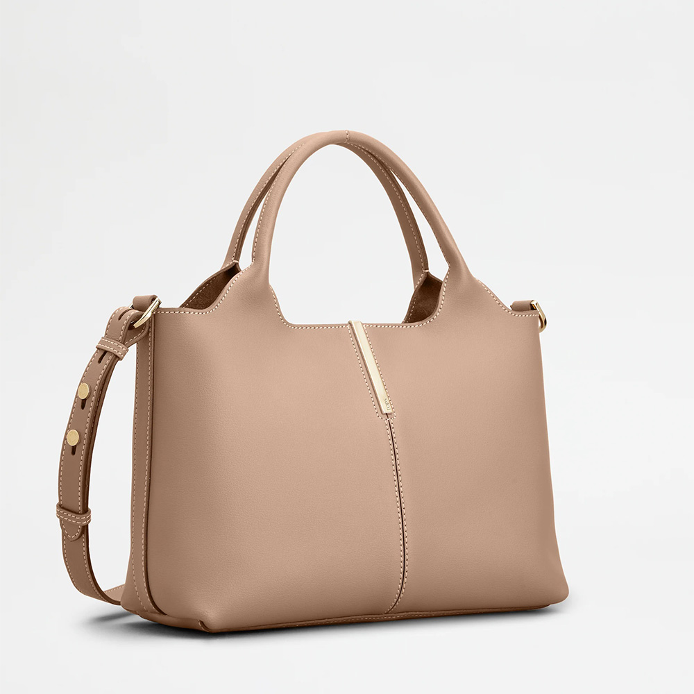エッセンシャルなデザイン、軽やかさ、実用性を融合させた、モダンなショッピング バッグ。カーフ レザーを用い、センター シームを際立たせるロゴ入りのバレッタ メタル アクセサリー、ダブル ハンドル、取り外し可能なショルダー ストラップ、マグネット クロージャーを合わせた、都会的なデイリールックに最適なスタイルです。