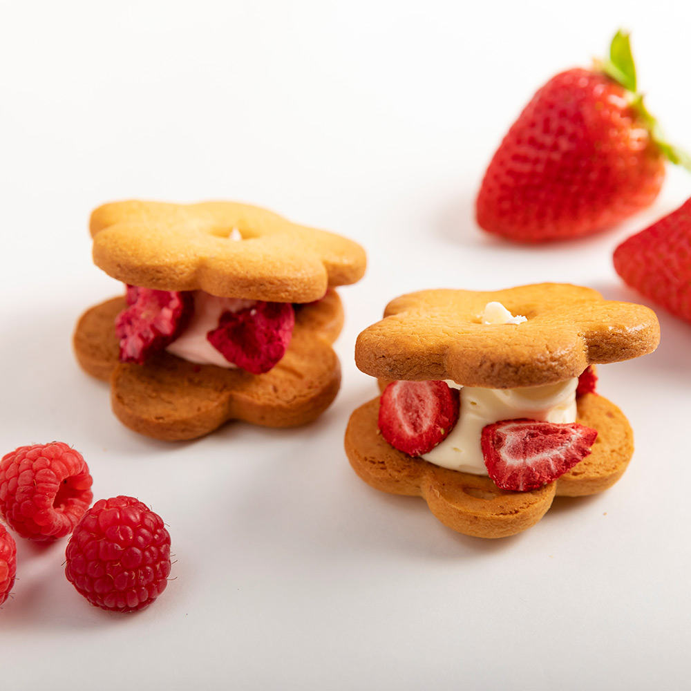 お花の形のバターサンドクッキー「フルリール」。フルリールはフランス語で「花が咲く」です。