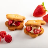 【冷凍便でお届けします。解凍まで時間がかかりますのでご注意ください。】京都府舞鶴市のパティスリー<ラ・クロシェット・ヒラノ>のバターサンドです。バター、小麦粉、和三盆糖を使用したサクサクと香ばしいクッキーは丁寧に焼き上げております。可愛らしいいちごとフランボワーズをサンドした蓋を開けると笑顔がこぼれるセットです。【バニラバタークリームといちご】ミルク感あふれるバタークリームにフリーズドライのいちごを合わせました。フルーティーな香り、甘酸っぱい酸味が調和した多くの方に愛される味わいに仕上がりました。【いちごバタークリームとフランボワーズ】いちごエキスをプラスしたほんのりピンクのバタークリームにフリーズドライのフランボワーズをあわせました。