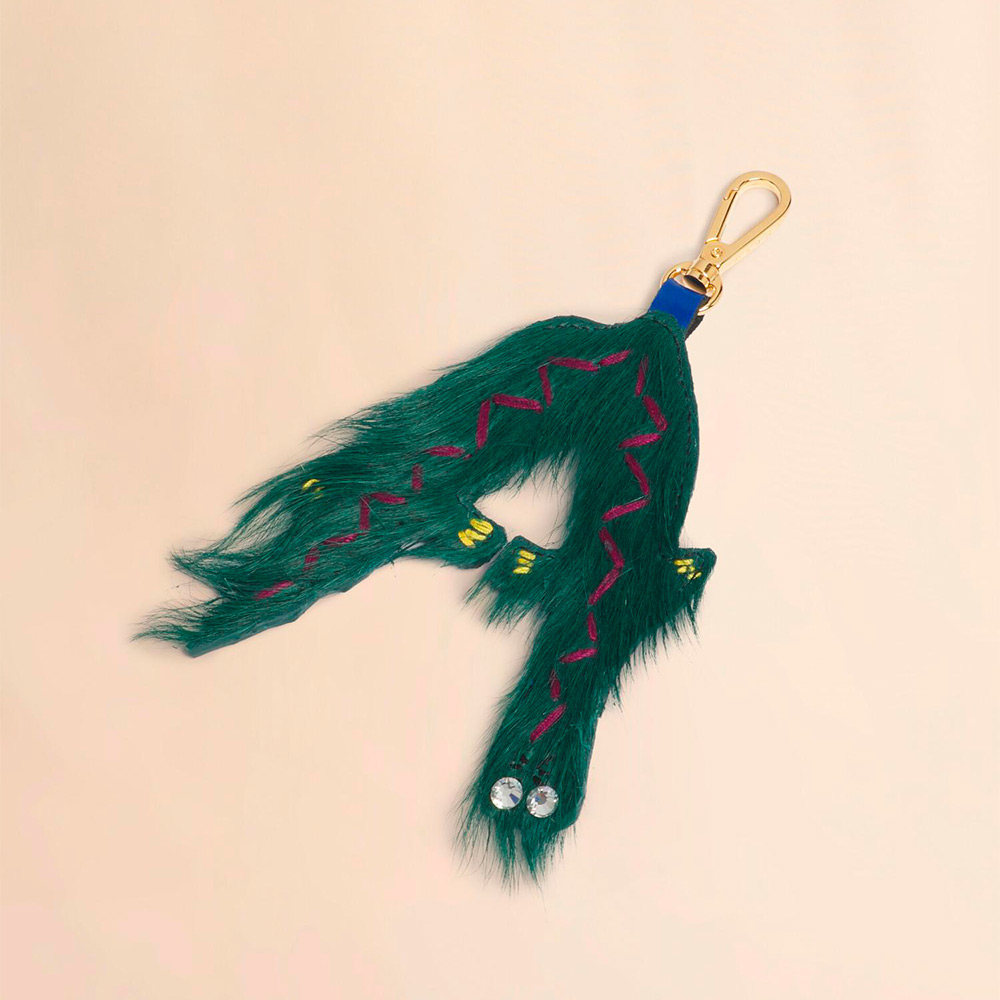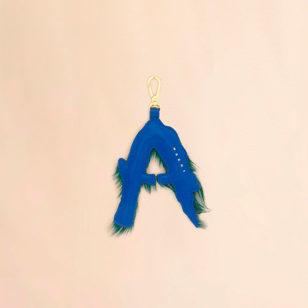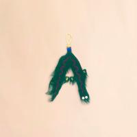「A」をクロコダイルモチーフで表現したアニマルチャーム。ヘアカーフ素材にラインストーンとコントラストステッチを施したデザイン。