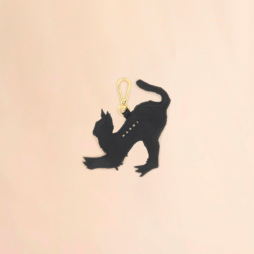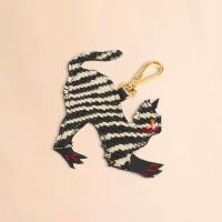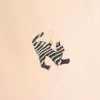 「N」をキャットモチーフで表現したアニマルチャーム。ウェーブ柄の生地にラインストーンとコントラストステッチを施したデザイン。