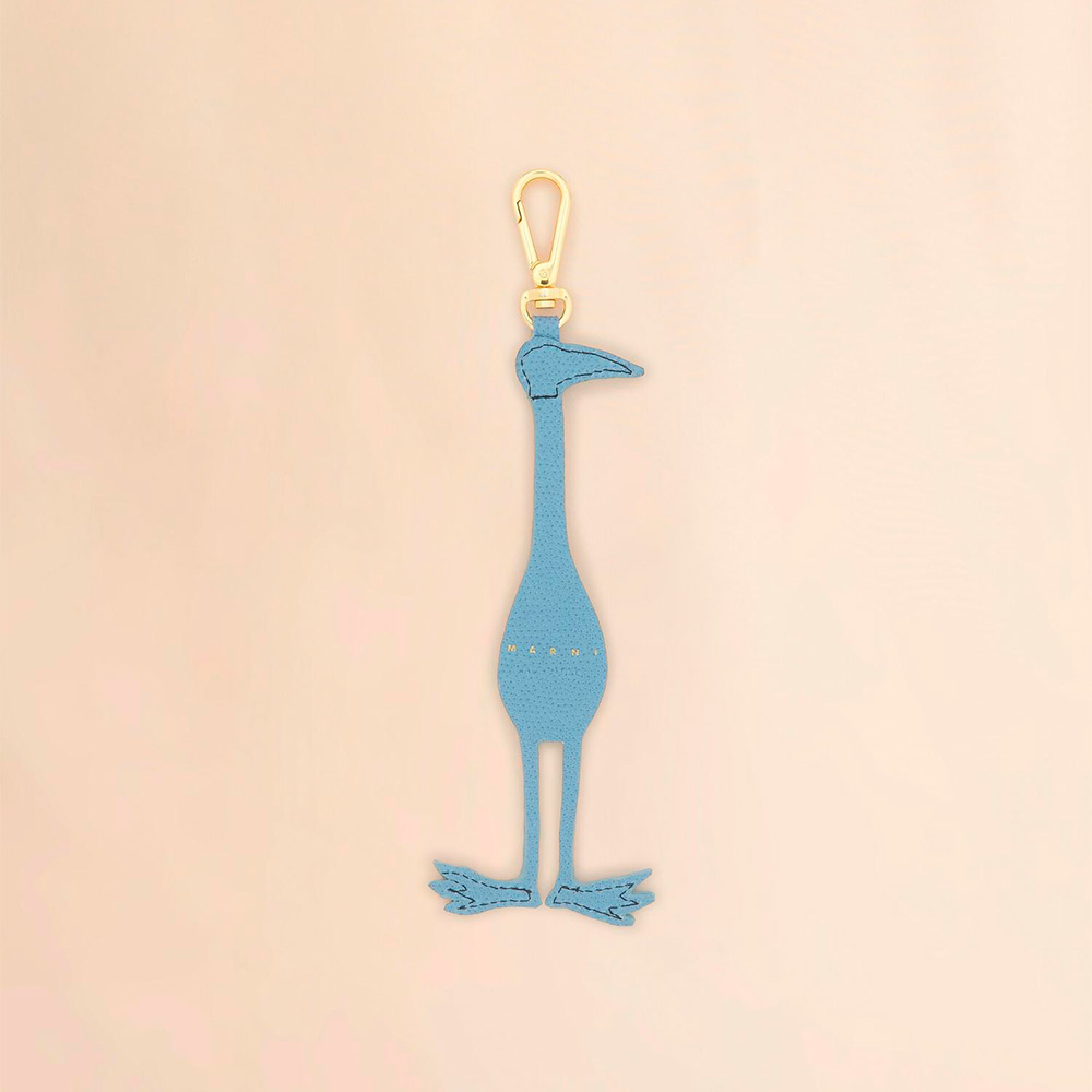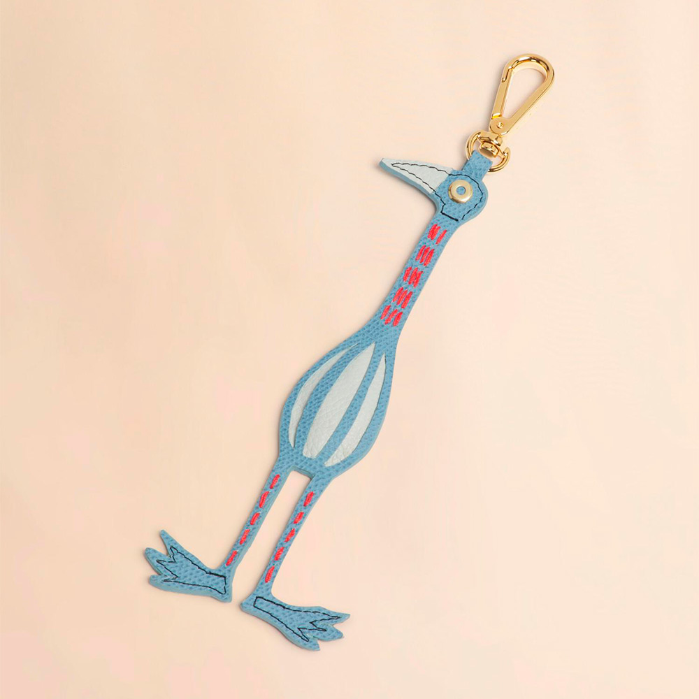 「I」をバードモチーフで表現したアニマルチャーム。レザーにコントラストステッチを施したデザイン。