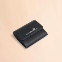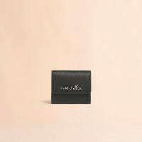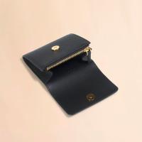 カーフレザー製の「MENDING」カードホルダー。ジップ付きポケット1つ、メインコンパートメント1つ。ハンドステッチでほどこされたメンディングロゴのフラワーモチーフが愛らしいアクセントに。