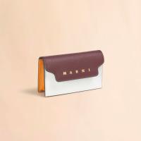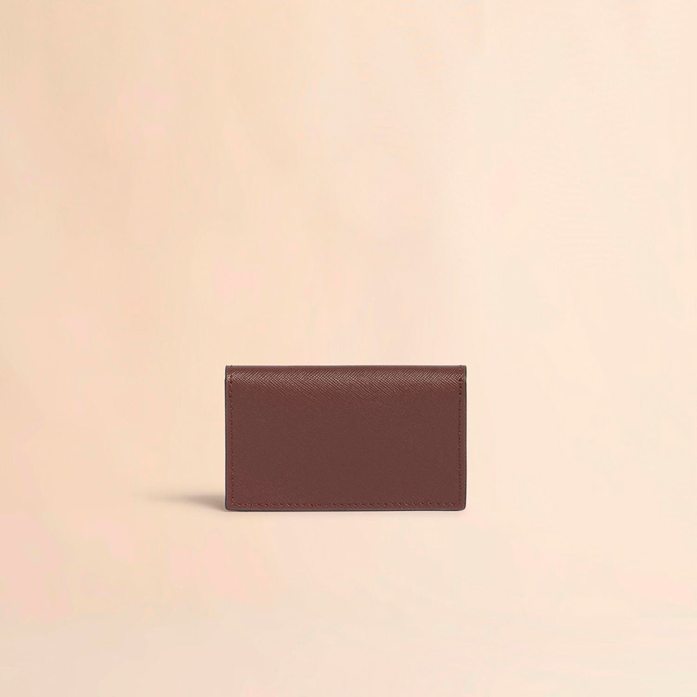 サフィアーノレザー製のカードケース。名刺入れ1つ、クレジットカードスロット1つのコンパクトなカードケース。フロントに施されたコントラストカラーのロゴがポイントに。