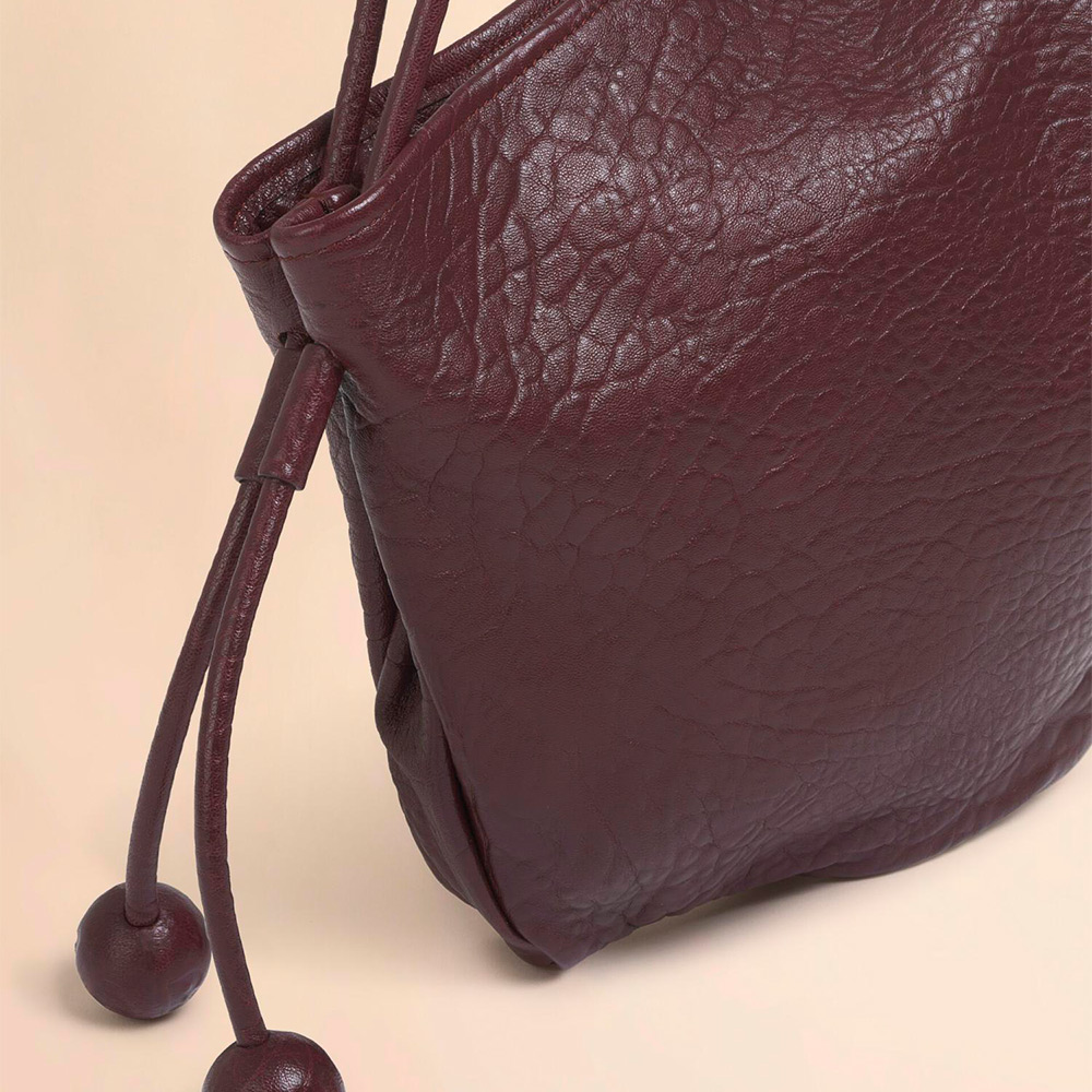 グレインレザー製の「TRUNKAROO SOFT」HOBOスモールショルダーバッグ。ソフトなシェイプシルエットでアシンメトリックなデザイン。ジップ開閉式。TRUNKAROOモチーフ付きの調節可能なドローストリングストラップがアクセントに。